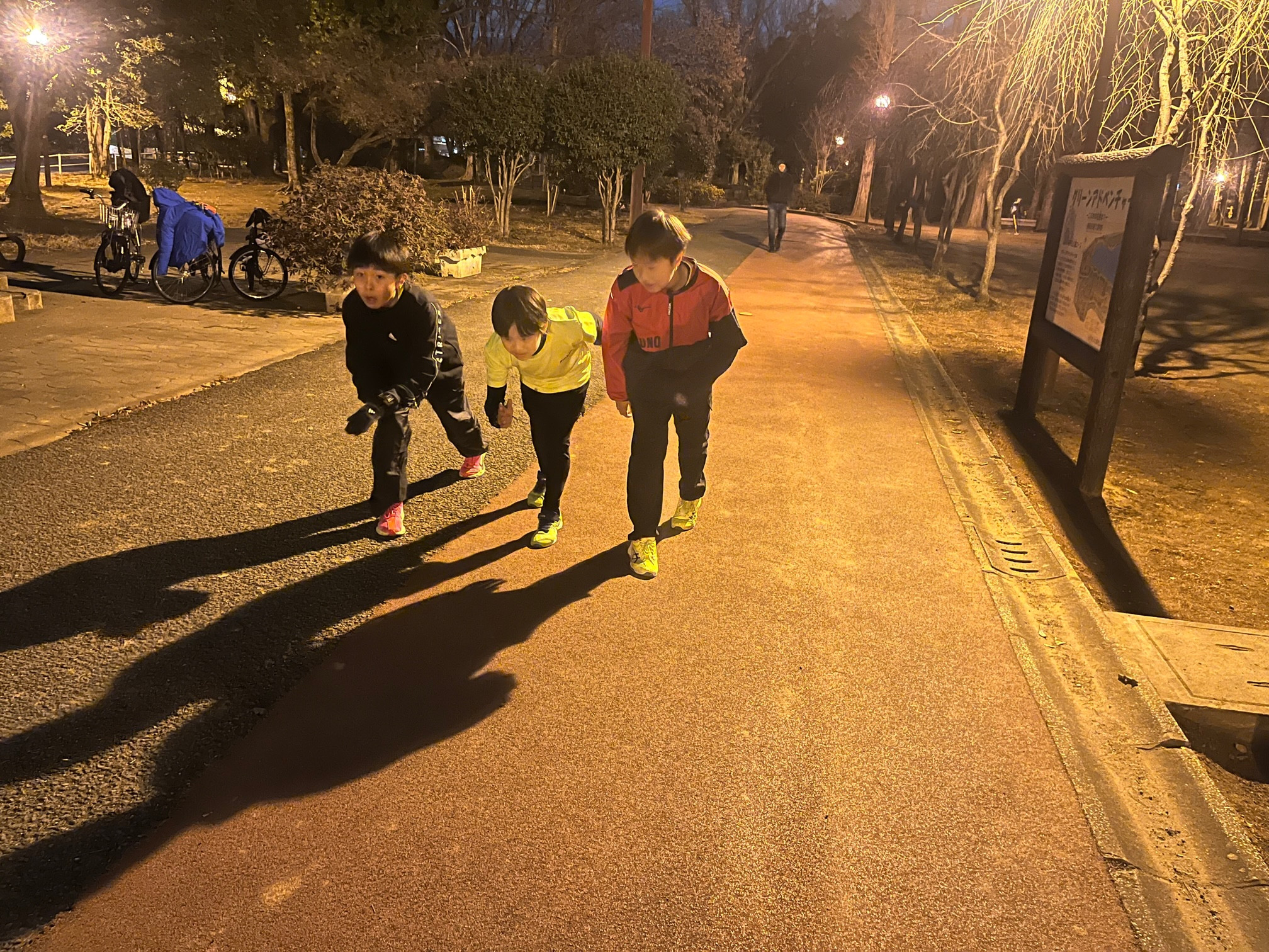 3人とも足が痛くなったので、セットを少なくして後半は速いウオーキングにしまた。ですが、いつもと同じ速さの歩きになってしまいました。