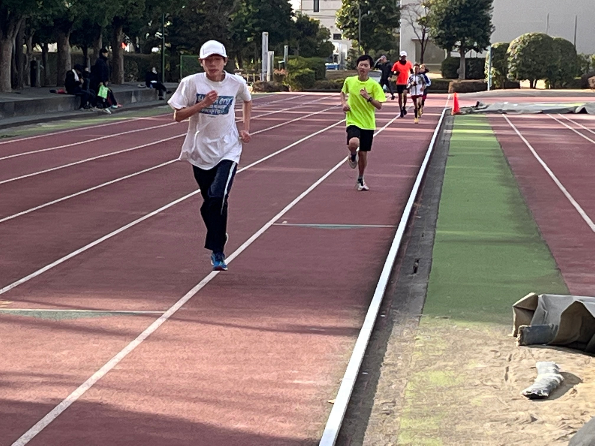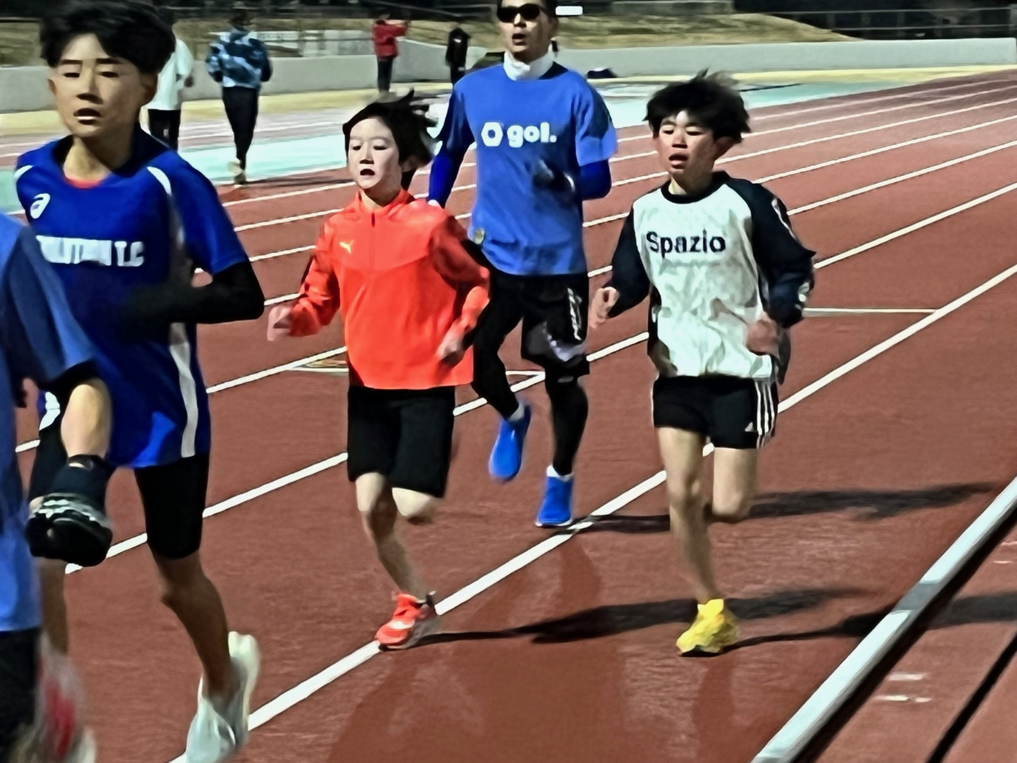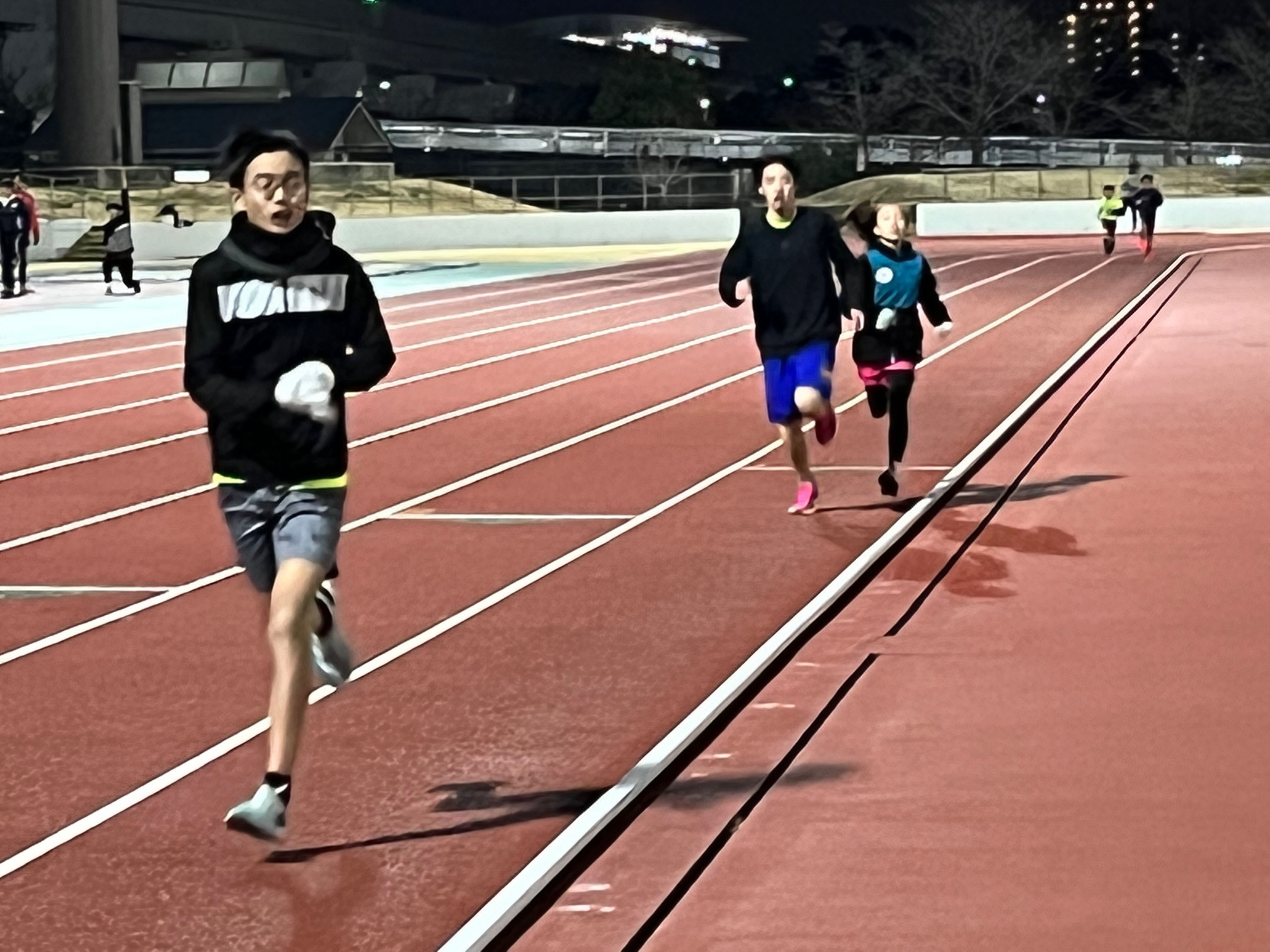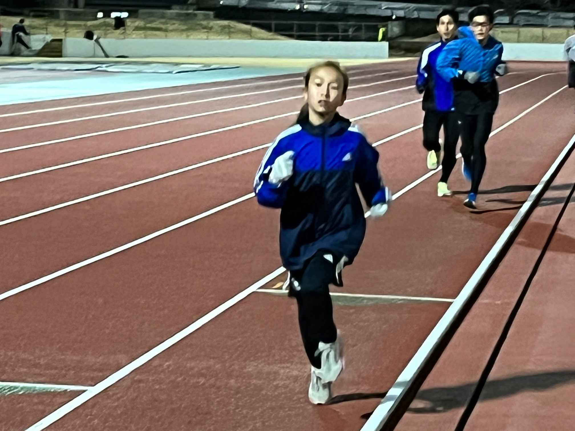 人数が少ないのと寒いので800mに切り替えました(大会も近いので)。