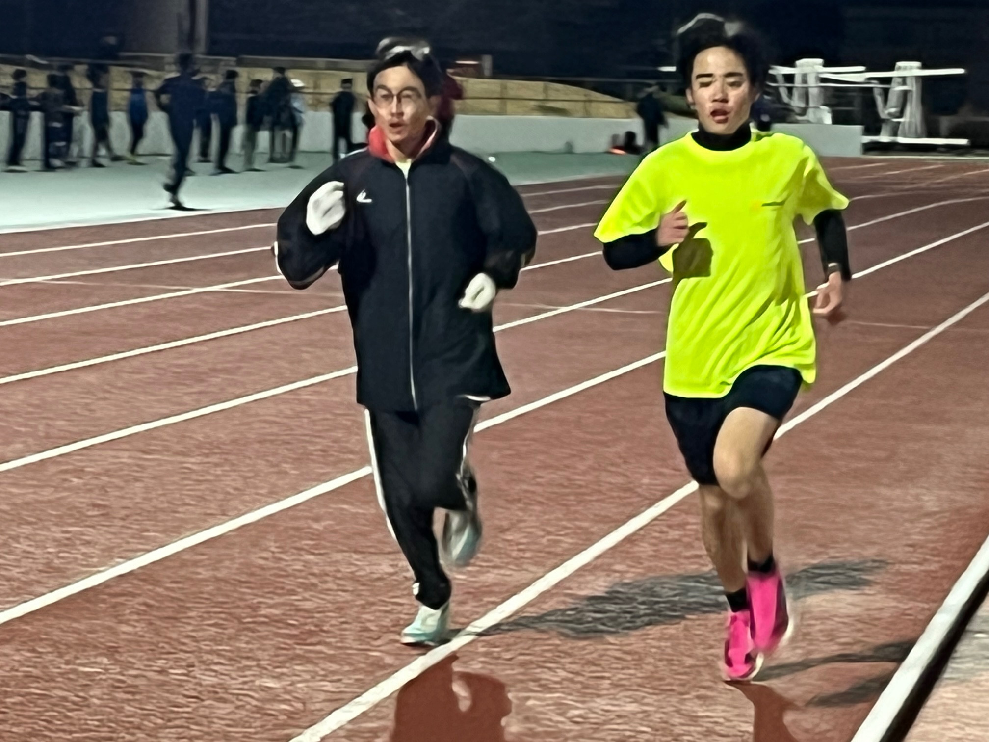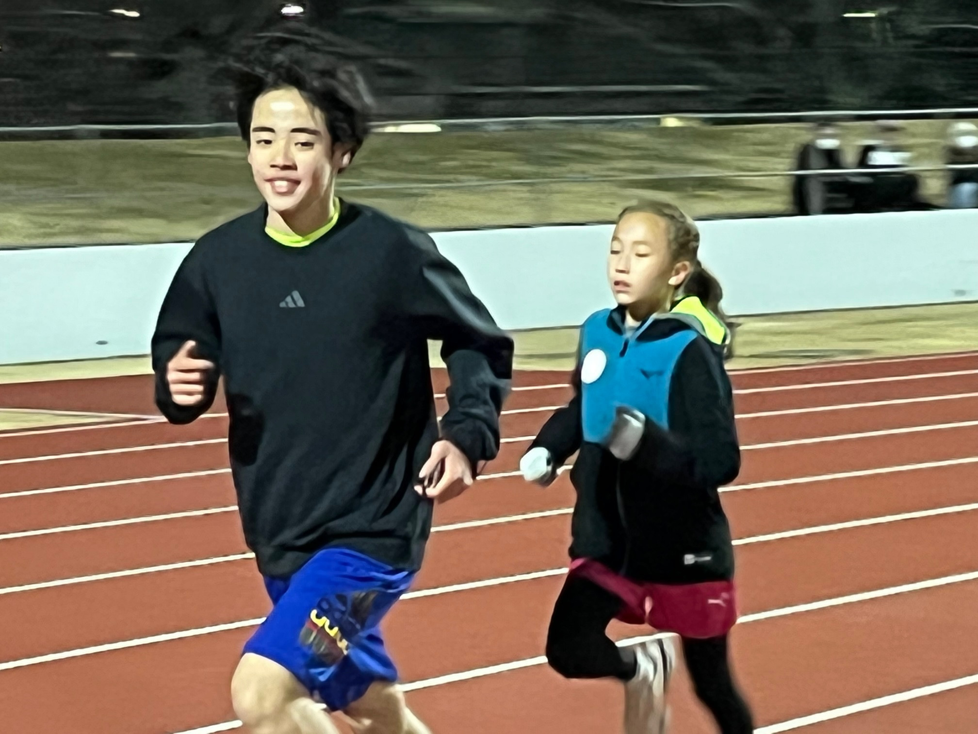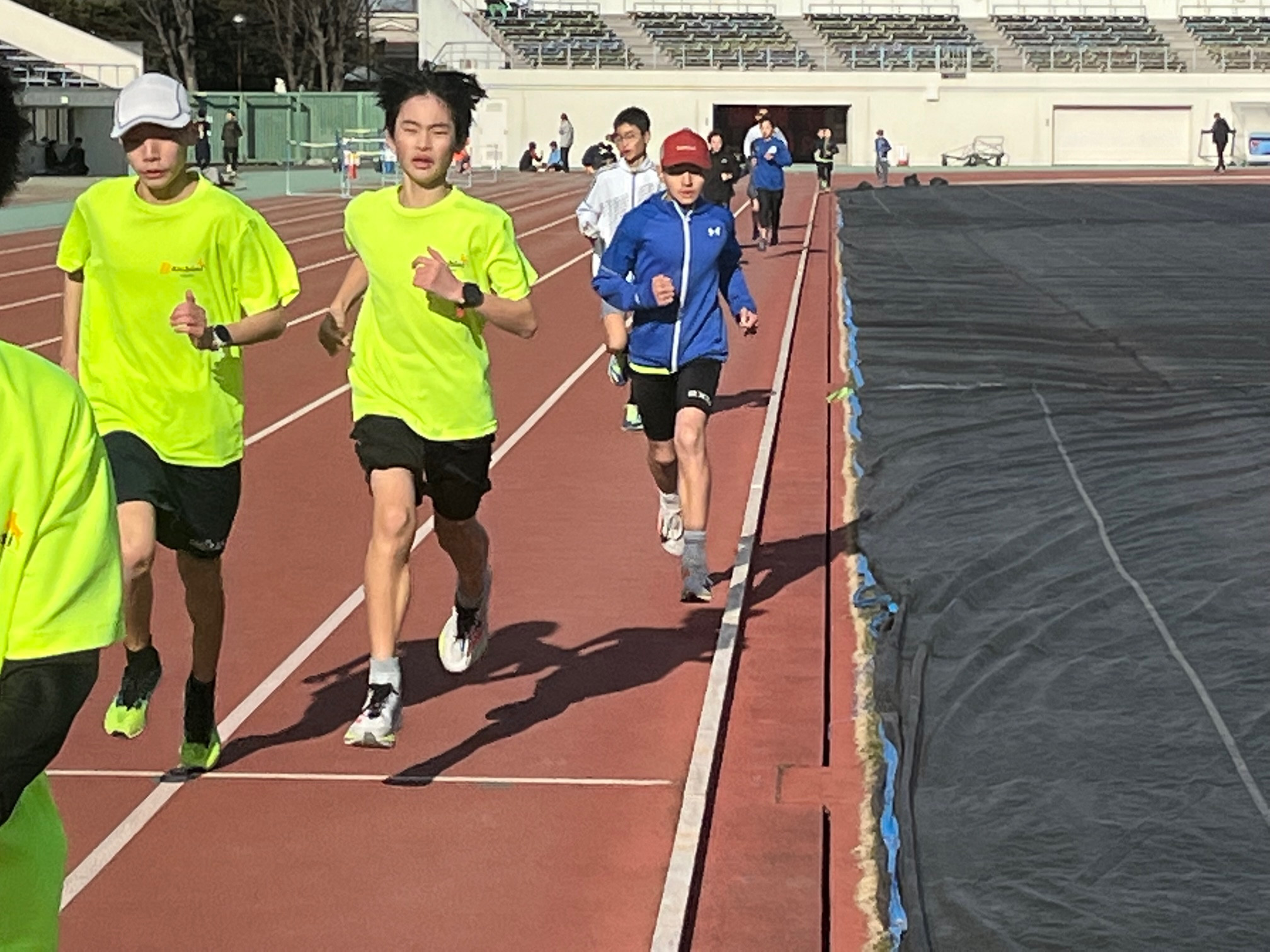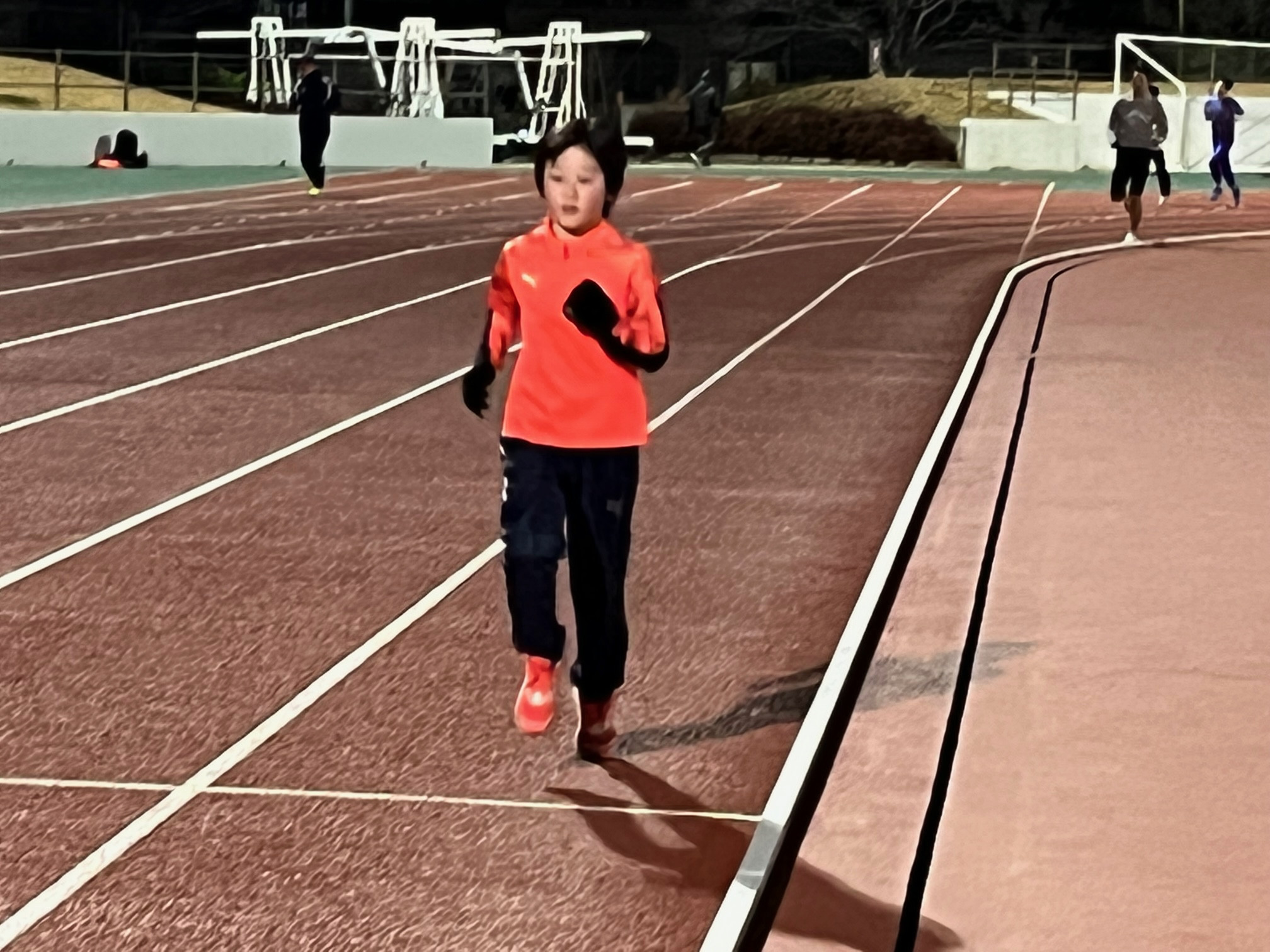 人数が少ないのと寒いので800mに切り替えました(大会も近いので)。