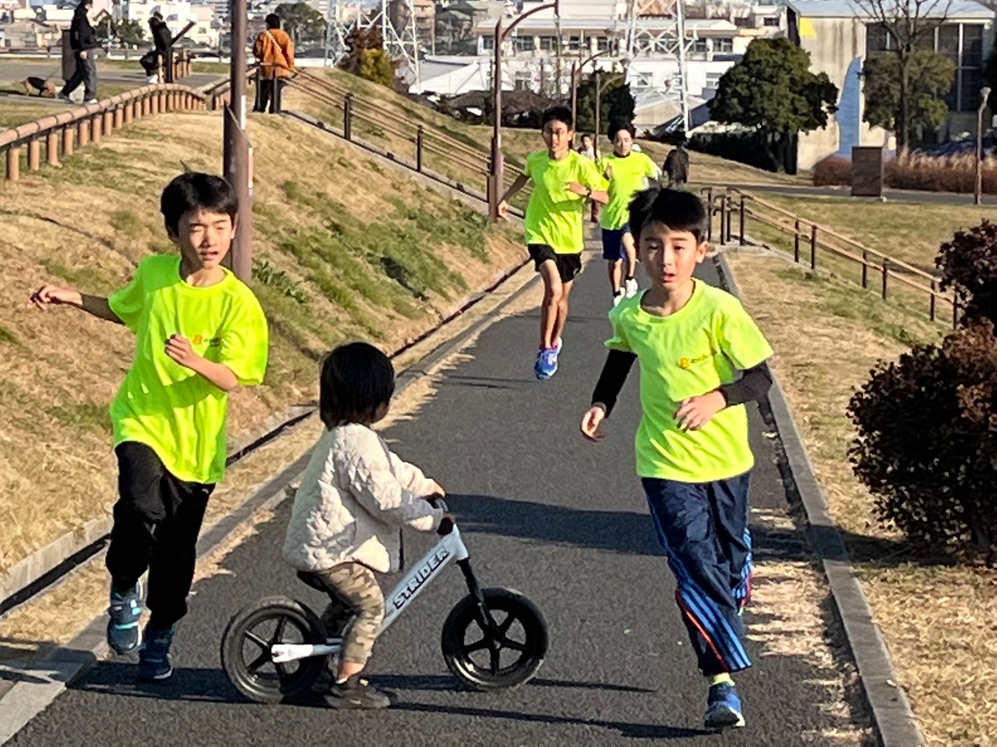 4.中学と一部の小学生はつなぎはジョッグです
