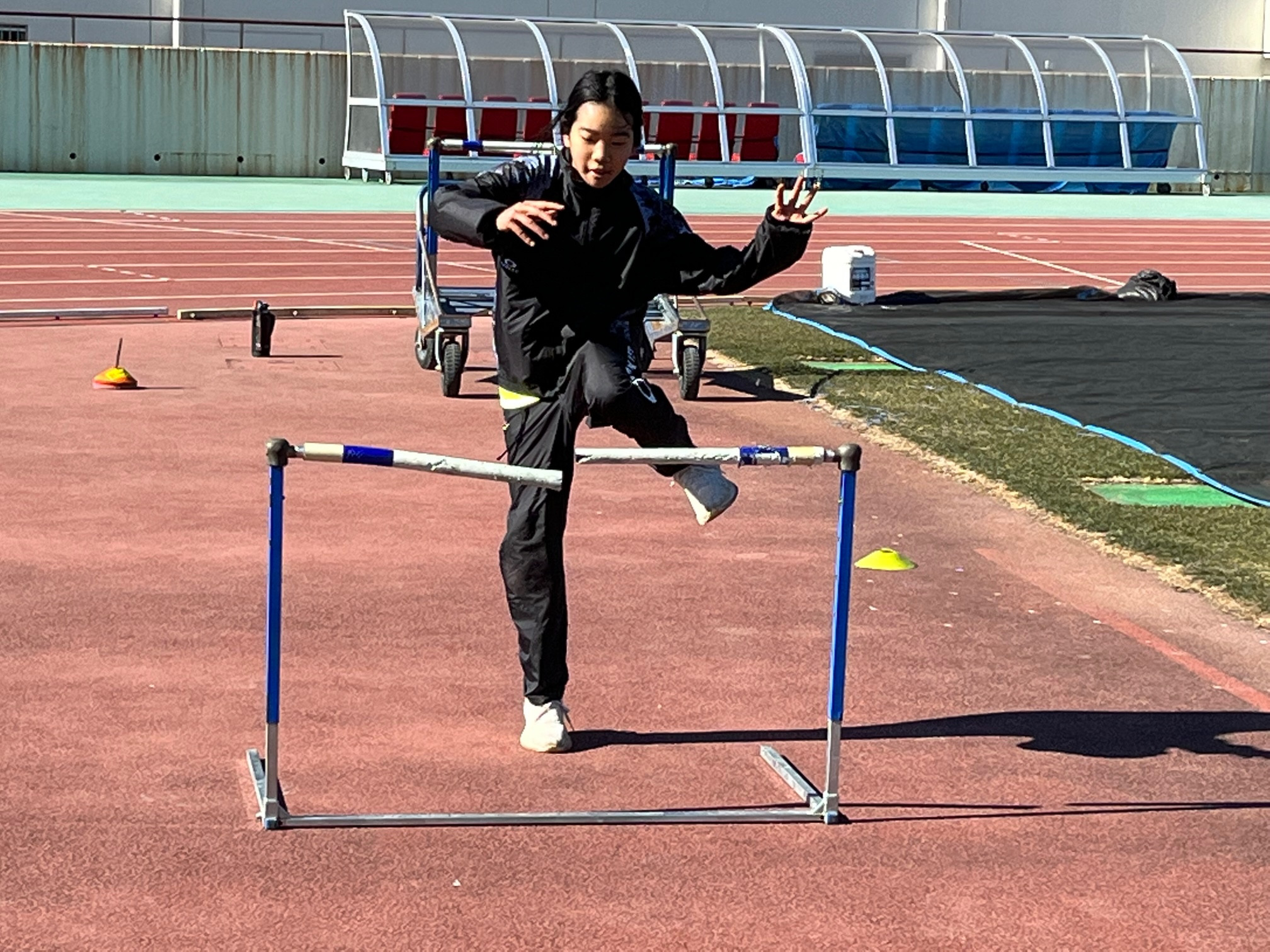 モモナは踏切の際身体を反る練習を繰り返しました。